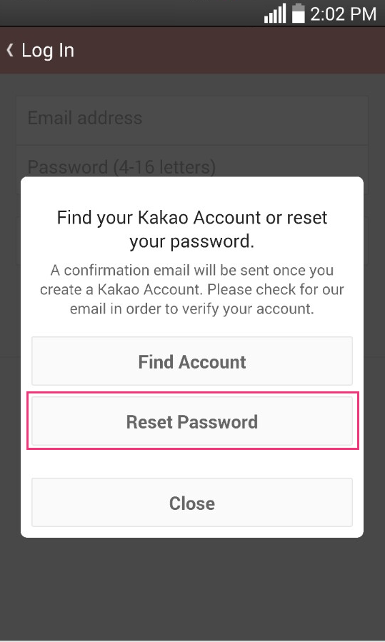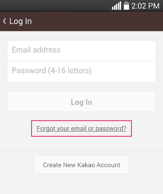 - 打开 Kakao Talk 应用程序 > 忘记了您的电子邮件或密码? > 重置密码